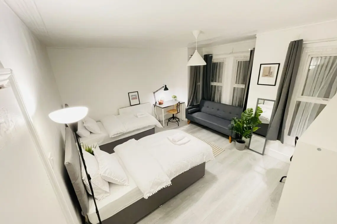 These are stylish guest house rooms in Leyton just 2min walk from Leyton Station Tube. Next to a peaceful park.
